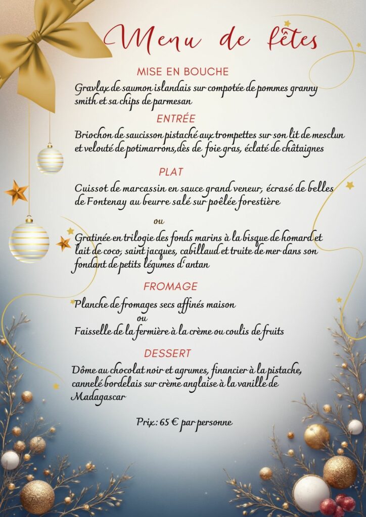Nos plats sont élaborés avec des produits fins, soigneusement sélectionnés pour vous offrir une expérience savoureuse et festive.